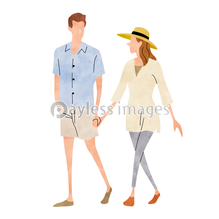 イラスト素材 夏のファッション カップル 歩くのイラスト素材